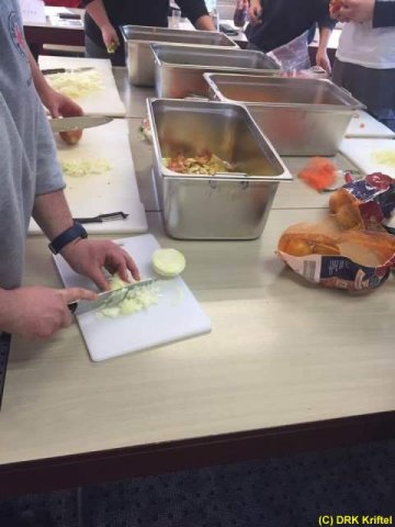 Am Samstag wurde im praktischen Teil den Teilnehmer die richtige Schnitt-Technik bei Fleisch und Gemüse gezeigt. Die Teilnehmer setzten dieses Neugelernte anschließend in die Tat um und zerkleinerten das Gemüse fachgerecht für die Sonntagsverpflegung.