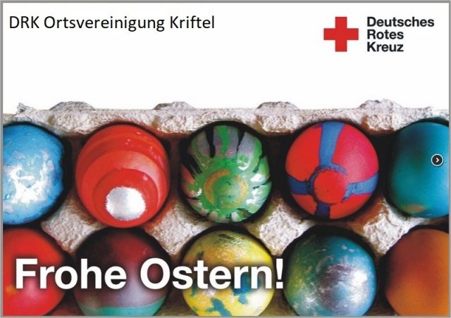 13. April 2022 Die DRK Ortsvereinigung Kriftel wünscht allen Mitgliedern, Freunden und Gönnern Frohe Ostern. Genießt das lange Wochenende und bleibt uns alle Gesund.