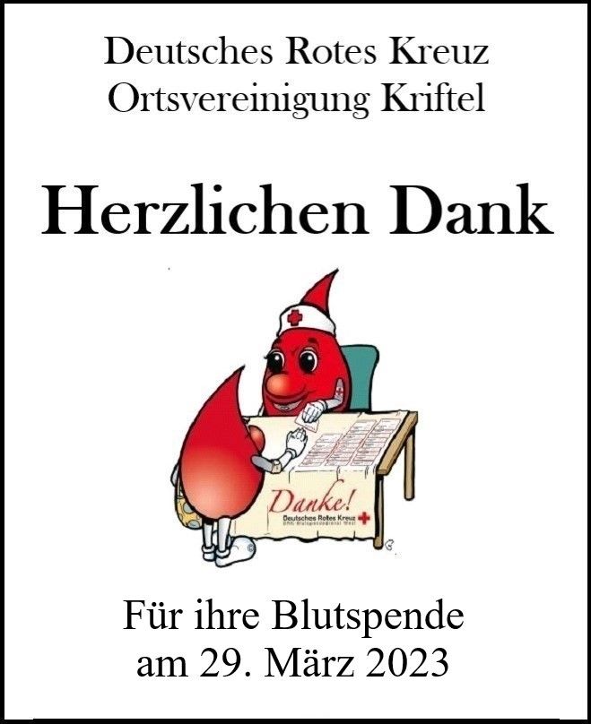 Und nicht vergessen der nächste Blutspendetermin in Kriftel findet satt