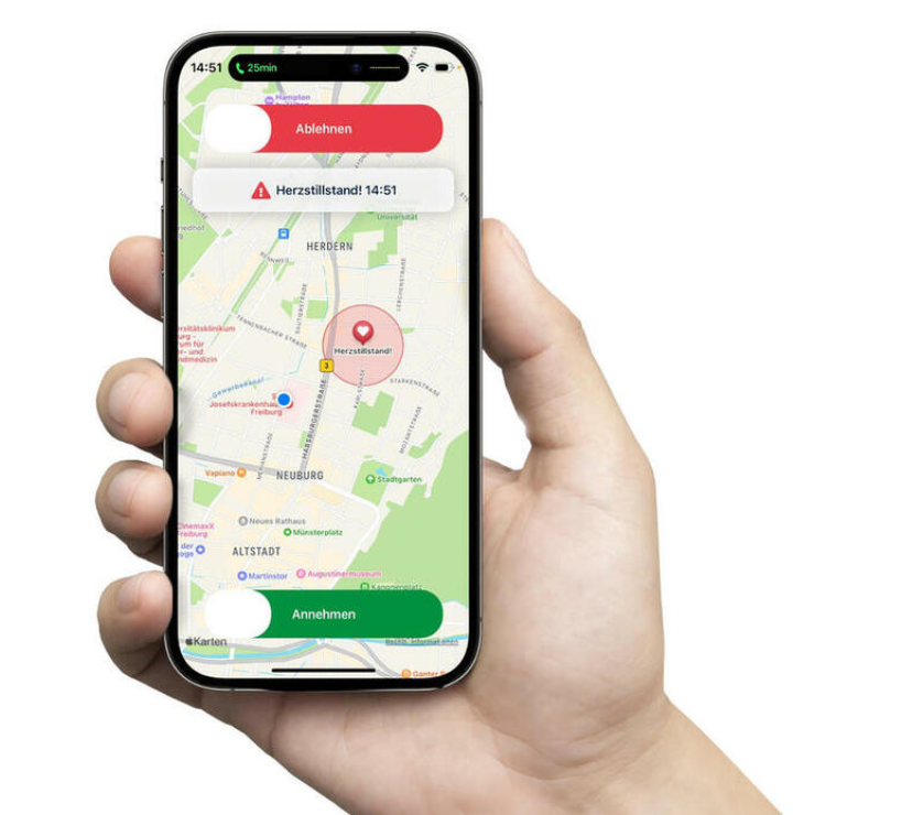 Über die App werden nun registrierte Ersthelfer, die sich in unmittelbarer Nähe des Notfalls befinden, per Smartphone geortet und direkt zum Einsatzort alarmiert. Diese ehrenamtlichen „Lebensretter“ können die Zeit bis zum Eintreffen des Rettungsdienstes überbrücken, etwa durch eine Herzdruckmassage.