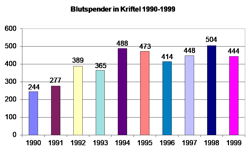 Am 27. September 2000, es ist der 95. Blutspendetermin in Kriftel, konnte der 9000. Spender begrüßt werden.